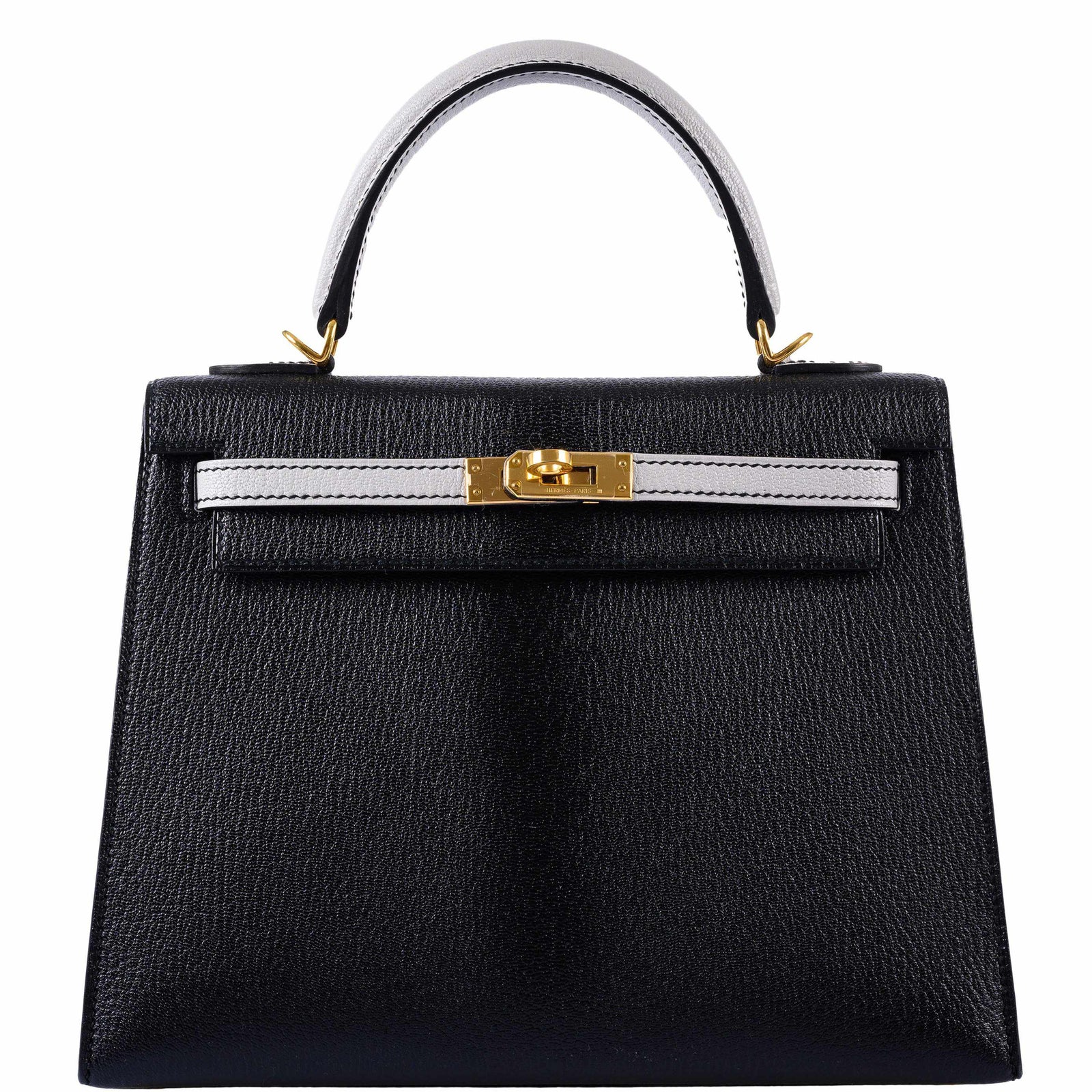 Hermès Kelly 25 HSS Sellier Black & Gris Perle Chevre Gold Hardware - 2019, D