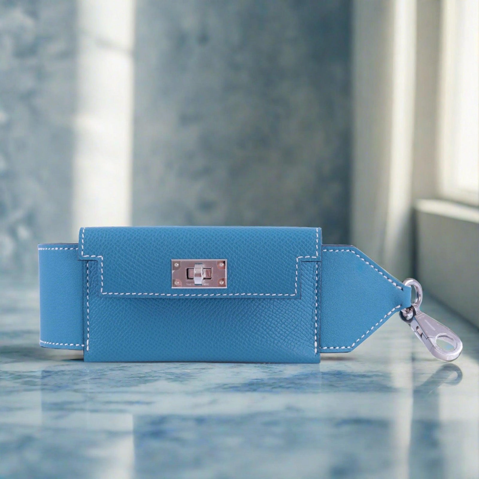 Hermès Kelly Pochette Pocket PM Strap Blue Jean Swift and Epsom Palladium Hardware