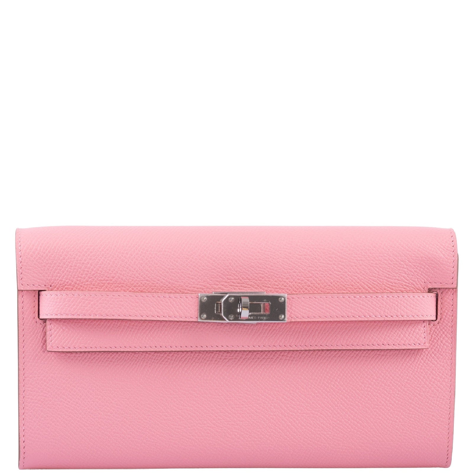 This Hermes Kelly To Go Wallet, presented in the delightful Rose Confetti Epsom leather from 2020, is a charming and versatile piece that combines the elegance of Hermes with practicality and style. Its vibrant Rose Confetti hue is like a dash of joy, soft yet lively, making it an irresistible addition to any accessory collection. Crafted from Epsom leather, this wallet is characterized by its textured and durable surface that maintains the wallet's shape over time. The palladium clasp, inspired by the timeless Kelly lock, adds a hint of luster that is both modern and timeless. The wallet's removable shoulder strap transforms it from a simple wallet to a statement piece that can be worn crossbody or over the shoulder. This feature encapsulates the innovative spirit of Hermes, making it not only a wallet but a versatile accessory for various occasions. This Hermes Kelly To Go Wallet is more than just a wallet; it's a testament to the wearer's discerning taste for luxury that's both functional and fashion-forward.