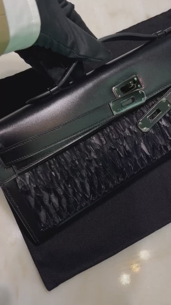 Hermès So Black Feather Kelly Cut Black Box PVD Hardware