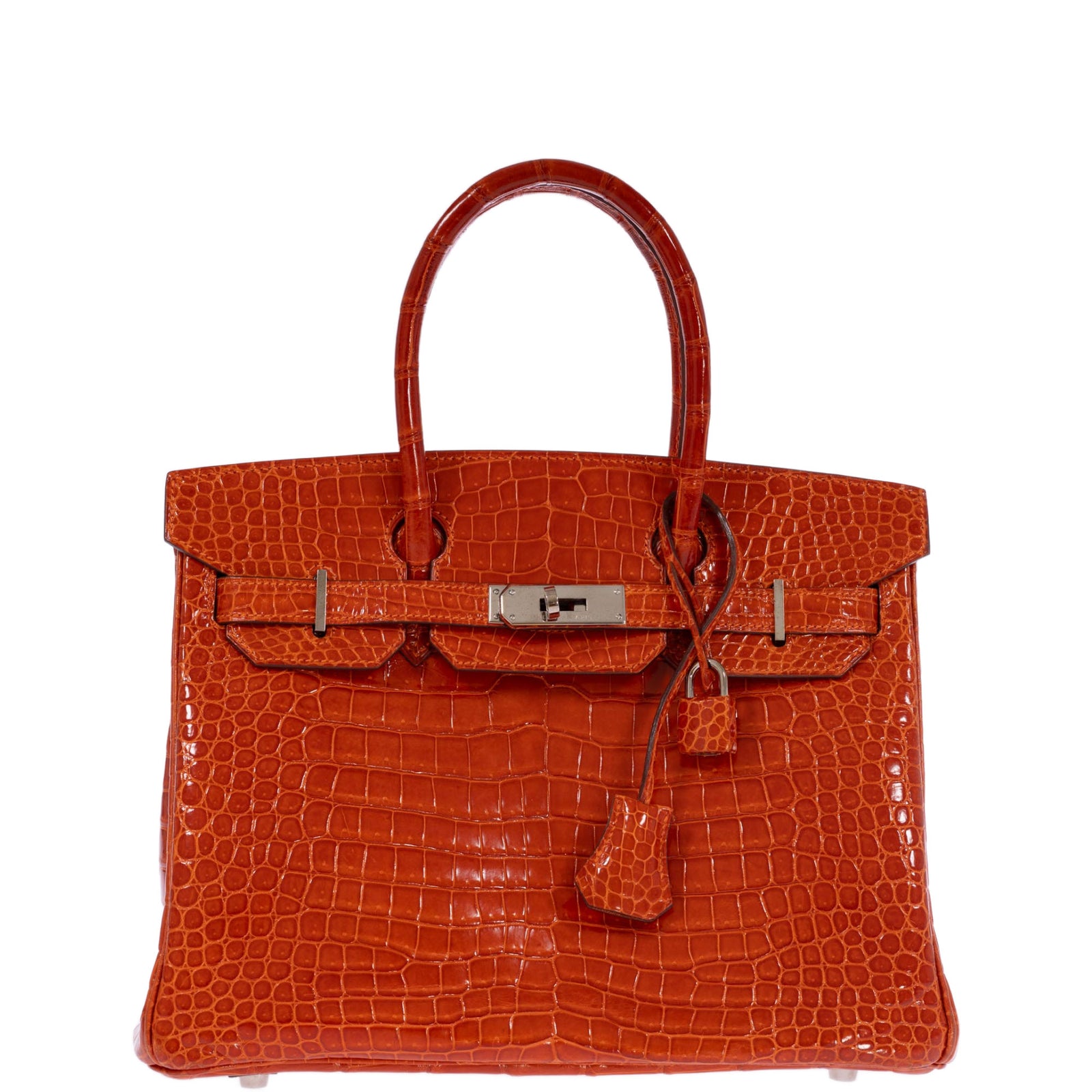Hermès Birkin 30 Orange Shiny Porosus Crocodile with Palladium Hardware