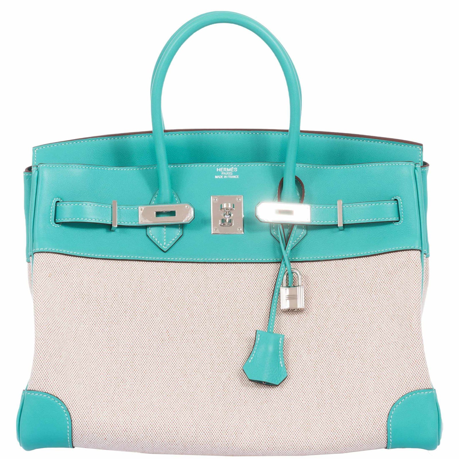 Hermès Birkin 35 Lagoon Swift And Toile Palladium Hardware