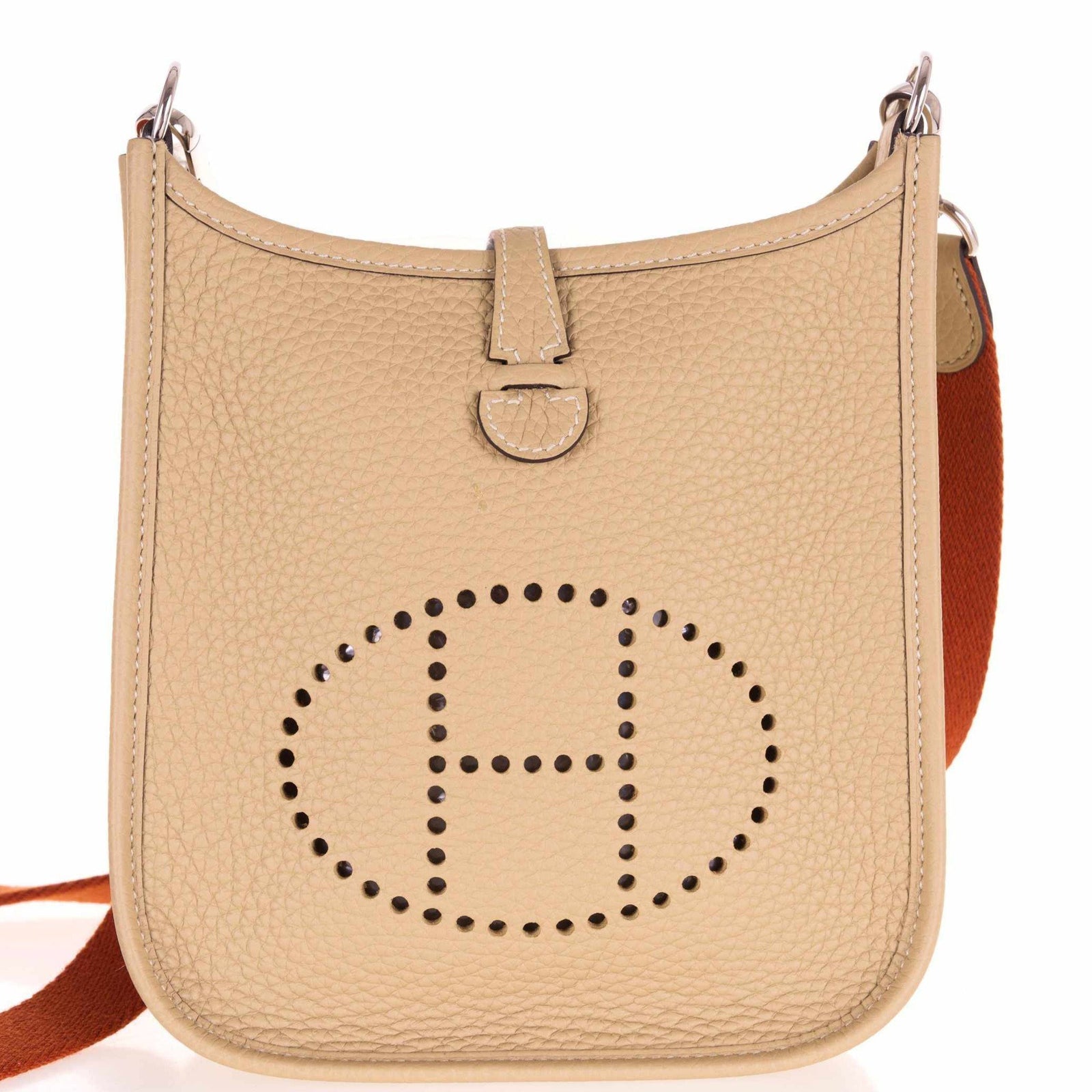 The Hermès Evelyne TPM, or Evelyne 16, is the distilled essence of the maison's equestrian heritage, scaled down for the modern "Mini Bag" era. This example is rendered in Trench, a sophisticated, earth-toned beige that serves as a versatile "New Neutral," sitting perfectly between the warmth of Gold and the coolness of Etoupe. Crafted from Clemence leather—a grained bull calfskin known for its slouchy, relaxed drape and matte finish—the bag offers a tactile softness that improves with use.