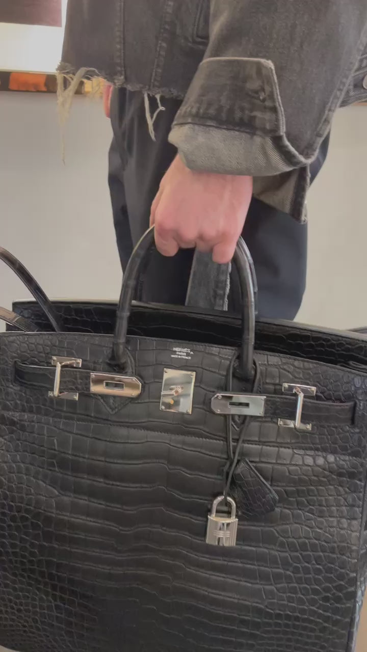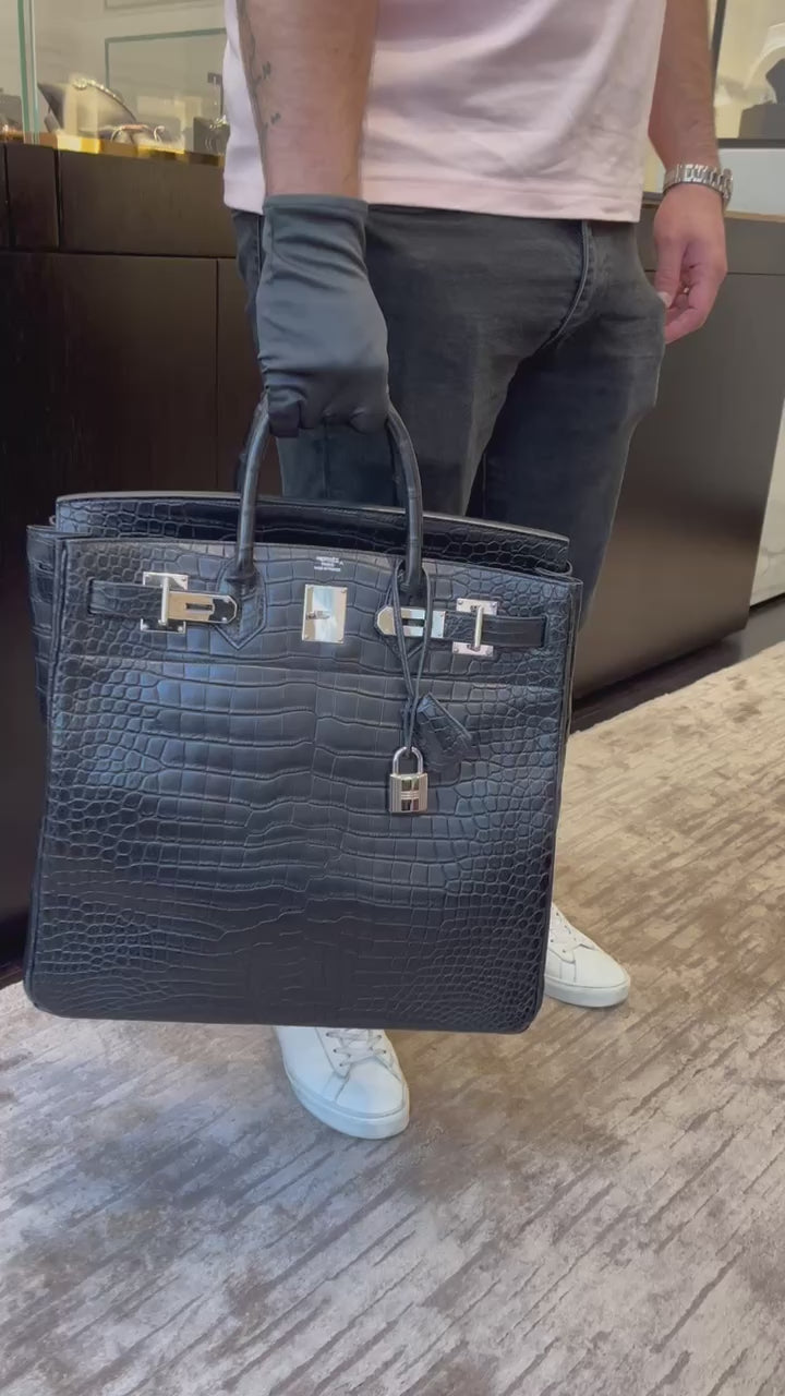 Hermès HAC Birkin 40 Black Matte Porosus Crocodile Palladium Hardware