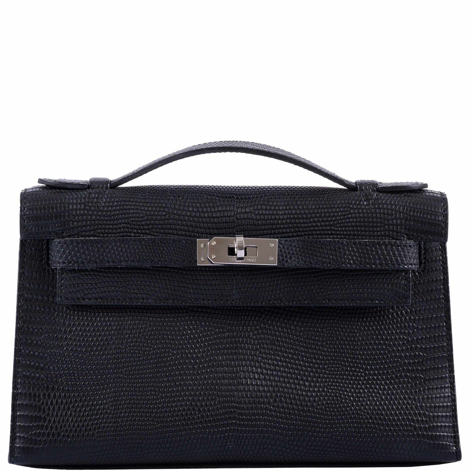 Hermès JPG Kelly Pochette Matte Black Salvatore Lizard Palladium Hardware