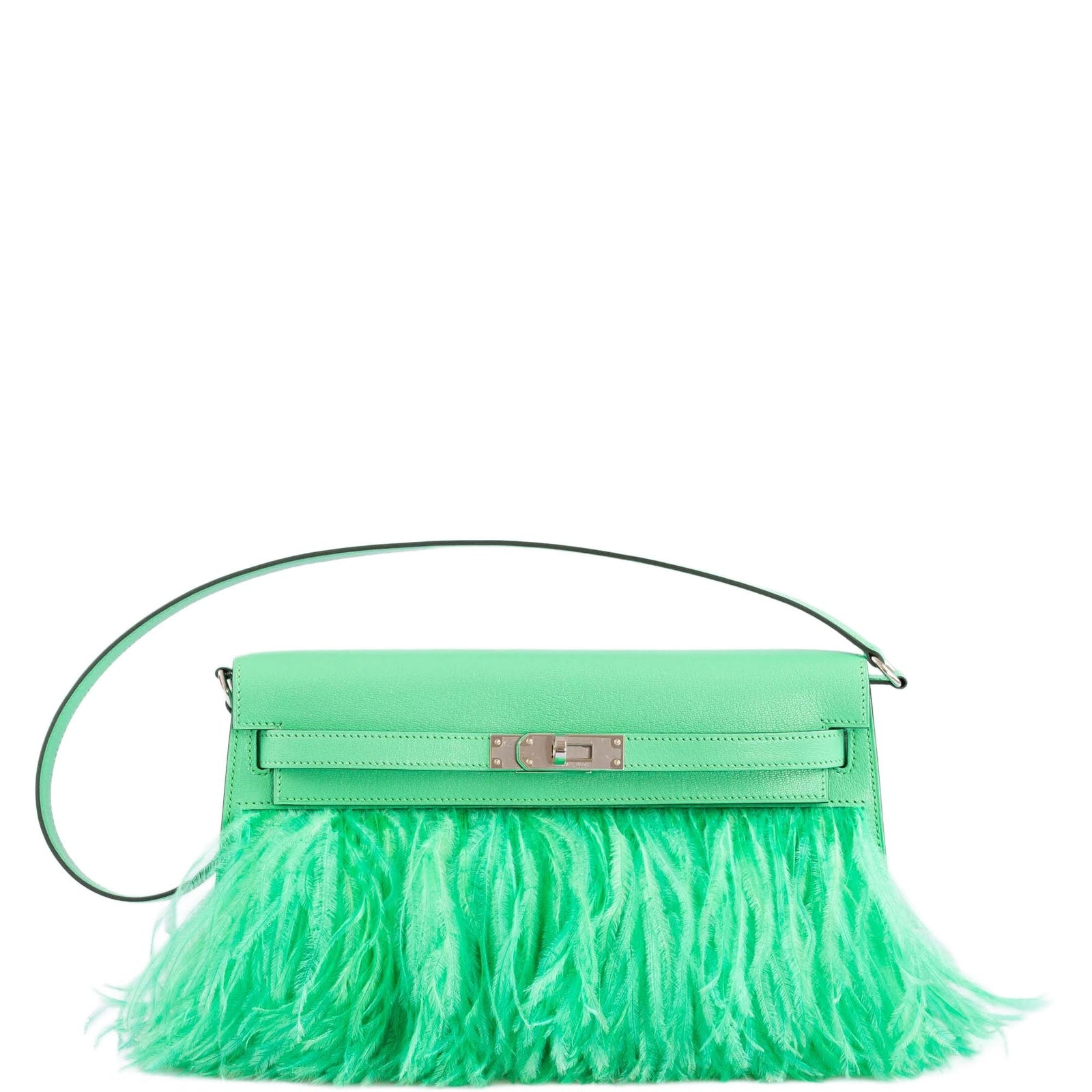 Hermès Kelly Élan "Plumes" Vert Comics Chèvre Chamkila & Ostrich Feather Palladium Hardware Sale price$42,500.00 USD