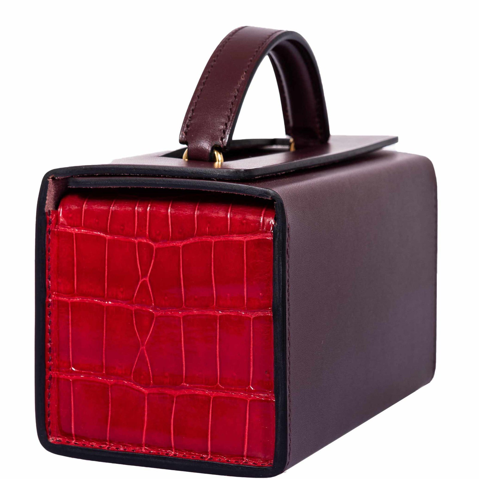 Hermès Minaudière 18 petit h Braise, Gris Paris Porosus Crocodile, Bordeaux Calf Gold Hardware