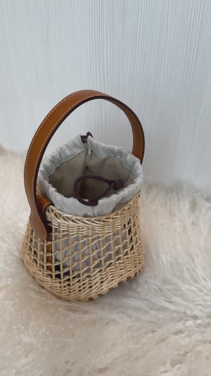 The Hermes Picnic Sabot bag is a captivating masterpiece that perfectly embodies the spirit of leisurely luxury. This exquisite piece is a testament to Hermes' innovative design ethos, blending traditional craftsmanship with whimsical charm. The body of the bag is intricately woven from high-quality Osier wicker, a material that evokes a sense of nostalgia and rustic elegance, the shape an interpretation of a horse’s hoof. The wicker's natural texture and warm, earthy tones bring to mind serene countryside escapades and elegant outdoor soirees. Complementing the wicker's artisanal beauty is the luxurious Barenia leather trim, renowned for its smooth, supple feel and the ability to develop a rich and lustrous patina over time. This harmonious blend of materials creates a striking contrast, showcasing Hermes' prowess in marrying different textures to create something truly unique. This is a new design from 2023 that is still in store-fresh condition. Base length: 6.75", Width: 6.75", Height: 7.75", Drop: 10.50"