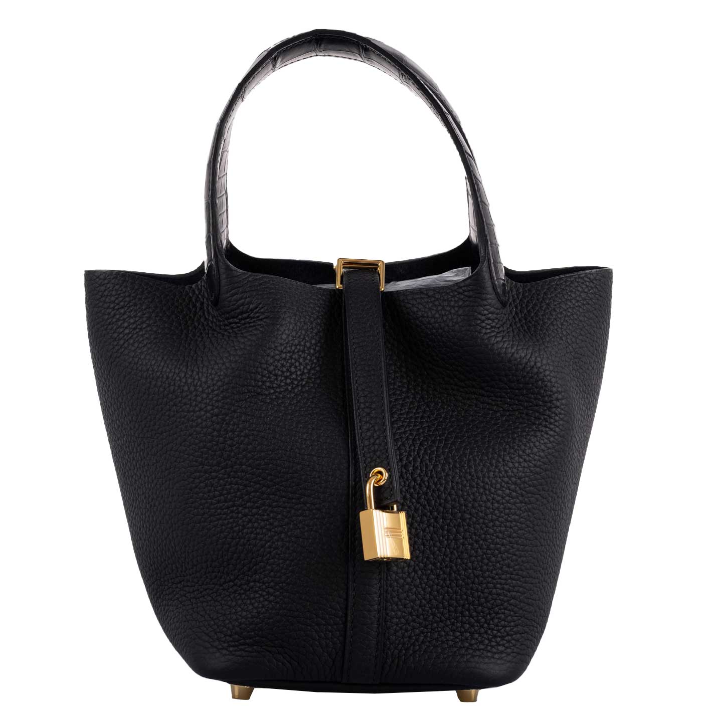 Hermès Picotin Lock Touch 18 PM Black Taurillon Clemence & Matte Alligator Gold Hardware