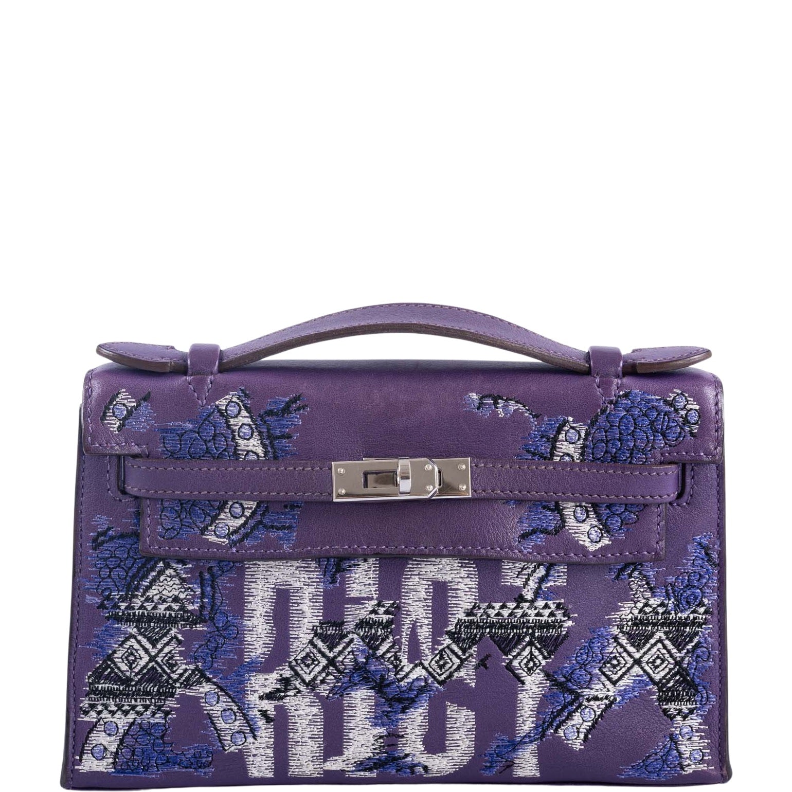 Constructed from a vintage Hermès Kelly Pochette in Purple Swift leather, this bag stands out through its radiant violet hue. The bag's exquisite leather, light in weight and finely grained, absorbs dye remarkably well, resulting in this stunning shade. The Purple Swift Kelly Pochette, first crafted in 2010, embodies timeless elegance and style.
